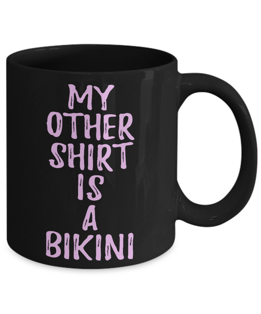 Bikini Girl Coffee Mug, My Other Shirt Is A Bikini-Black Porcelain Coffee Mug 11 oz For Daughter,Teen,Women, Girlfriend
