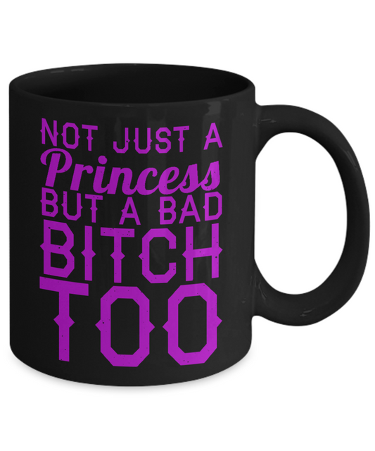 Cute Princess Coffee Mug,Not Just A Princess But A Bad Bitch Too-Black Porcelain Coffee Mug 11 oz For Daughter,Teen,Women, Girlfriend