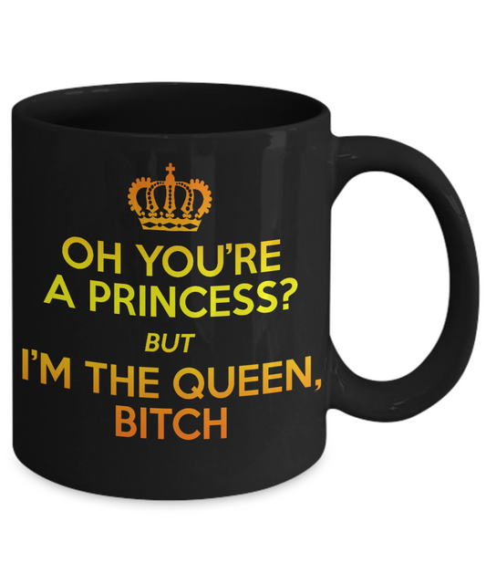 Cute Princess Coffee Mug, Oh You're A Princess But I'm The Queen Bitch-Black Porcelain Coffee Mug 11 oz For Daughter,Teen,Women, Girlfriend