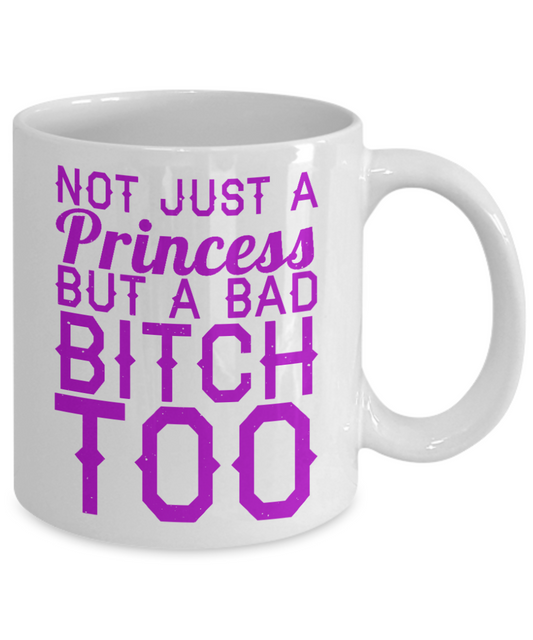 Cute Princess Coffee Mug,Not Just A Princess But A Bad Bitch Too-White Porcelain Coffee Mug 11 oz For Daughter,Teen,Women, Girlfriend
