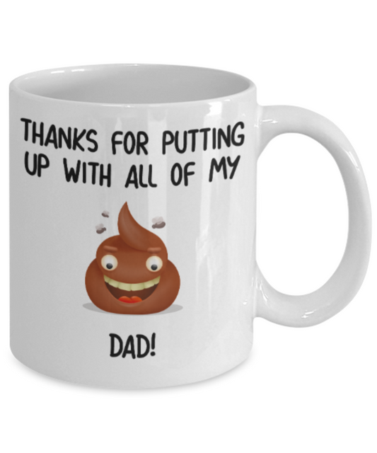 Dad gift mugs, Thanks for putiing up with all my shit Dad - Funny White Porcelain Coffee Mug Cute Ceramic Cup 11 oz