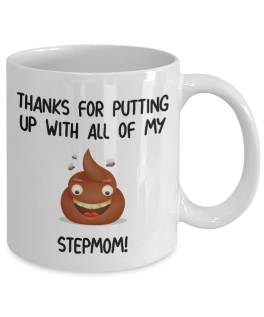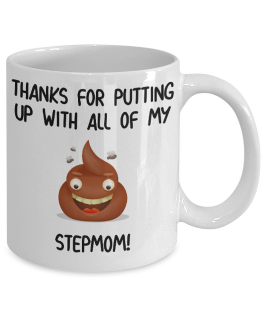 Stepmom gift mugs, Thanks for putiing up with all my shit Stepmom - Funny White Porcelain Coffee Mug Cute Ceramic Cup 11 oz