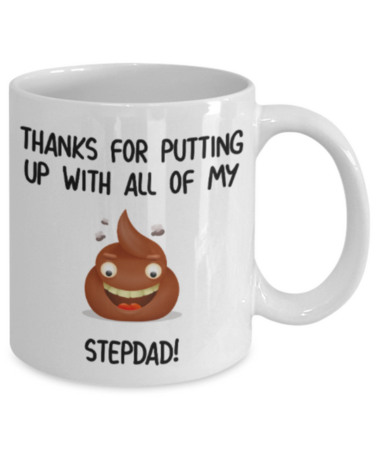 Stepdad gift mugs, Thanks for putiing up with all my shit Stepdad - Funny White Porcelain Coffee Mug Cute Ceramic Cup 11 oz
