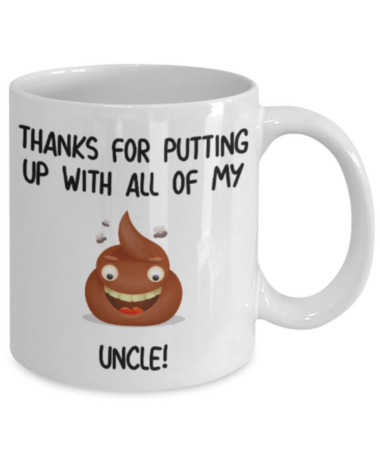 Uncle gift mugs, Thanks for putiing up with all my shit Uncle - Funny White Porcelain Coffee Mug Cute Ceramic Cup 11 oz