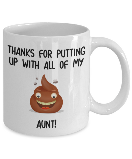 Aunt gift mugs, Thanks for putiing up with all my shit Aunt - Funny White Porcelain Coffee Mug Cute Ceramic Cup 11 oz