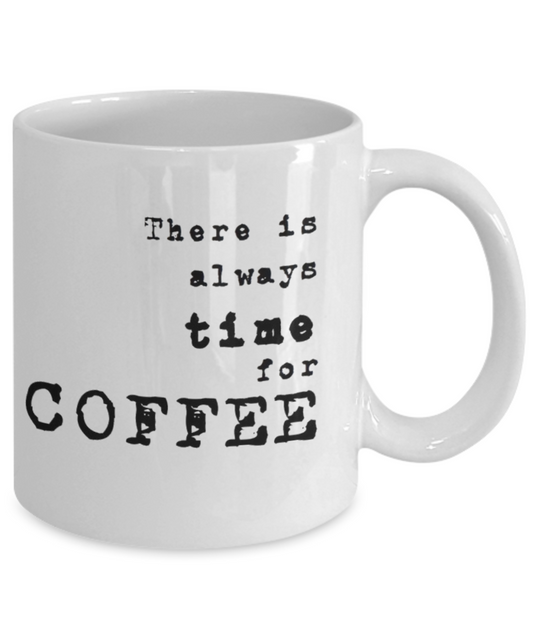 There is Always Time For Coffee, coffee Lover Mug, Coffee Addict Cup, Birthday Gift, White Ceramic Coffee Mug 11 Oz