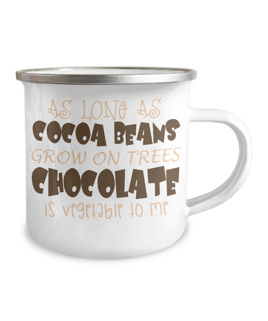 As Long As Cocoa Beans Grow On Trees Chocolate Is Vegetable To Me-12 Oz Stainless Steel Enamel Finish White Camper Coffee Mug