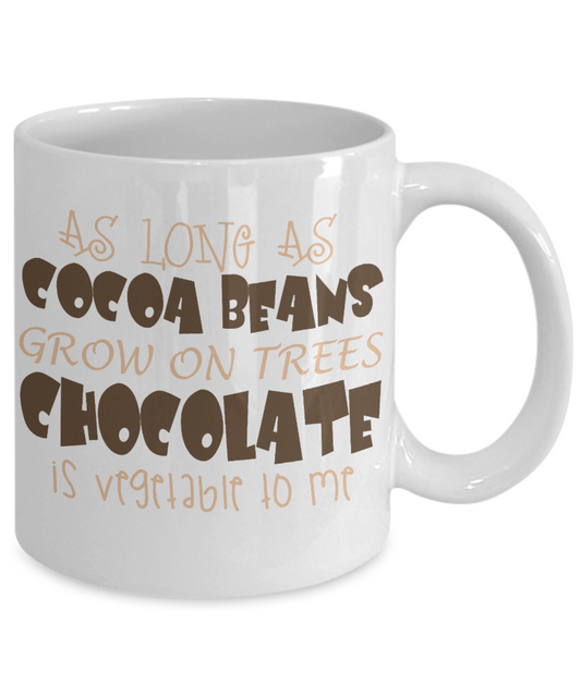 As Long As Cocoa Beans Grow On Trees Chocolate Is Vegetable To Me- White Porcelain Coffee Mug 11 Oz Funny Quotes Coffee Mug