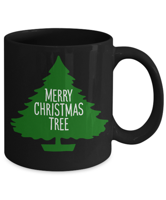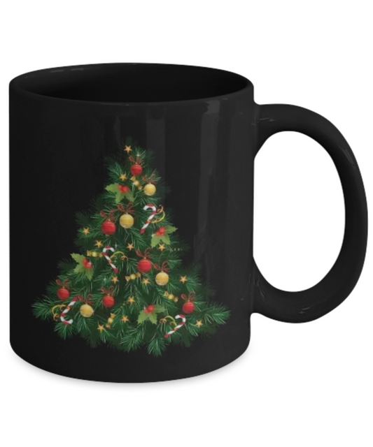 Christmas gift ideas, Christmas Tree - Funny Black Porcelain Coffee Mug Cute Ceramic Cup 11 oz