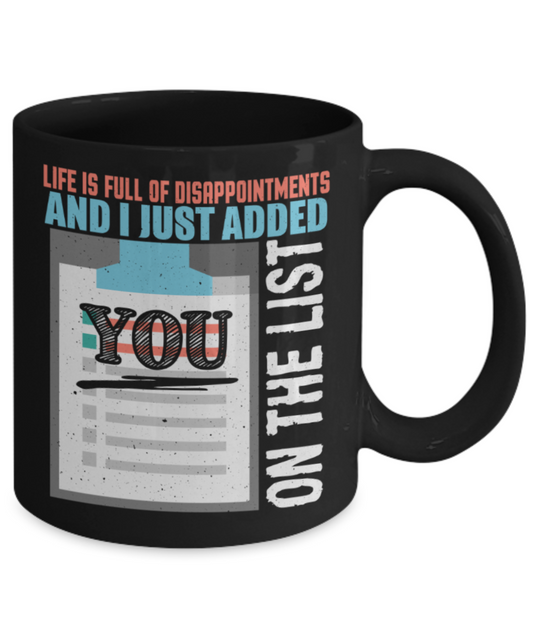 Life is full of disappointments and added you on the list - Funny Black Porcelain Coffee 11 oz