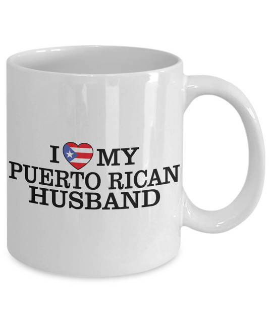 Great Wife Gift Coffee Mug, I Love My Puerto Rican Husband- White Porcelain Coffee Mug 11 oz For Husband, Wife, Wedding Anniversary, Birthday, Christmas, Gift