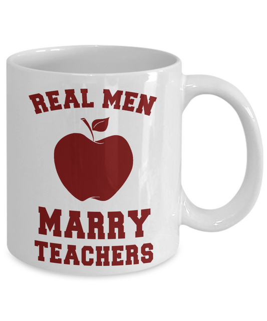 Best Teacher Ever Gift Coffee Mug, Real Men Marry Teachers- White Porcelain Coffee Mug 11 oz For Teacher, Teachers Day, Birthday, Christmas, Wedding, Anniversary, Gift