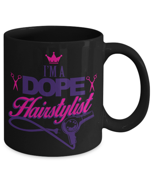 Funny Hair Stylist Gift Coffee Mug, I am a Dope Hairstylist -Black Porcelain Coffee Mug 11 oz for Hairdresser, Hair Stylist, Wedding Hairdresser, Beautician, Saloon