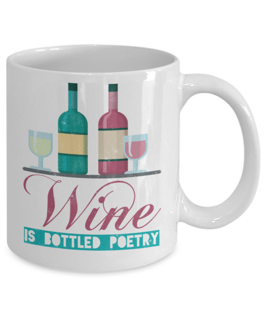 Wine Lovers Mugs, Wine is bottled poetry - Funny White Porcelain Coffee 11 oz