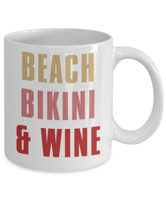 Bikini Girl Coffee Mug, Beach Bikini And Wine-White Porcelain Coffee Mug 11 oz For Daughter,Teen,Women,Girlfriend
