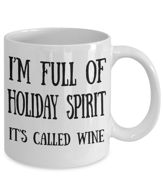 Wine Lovers mugs, I'm full of holiday spirit, It's called wine - White Coffee Mug Tea Cup 11 oz Gift
