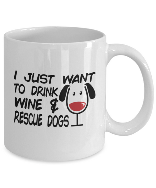 Gift gor dogs lovers , Drink wine and rescue dogs - White Coffee Mug Porcelain Tea Cup 11 oz - Great Gift