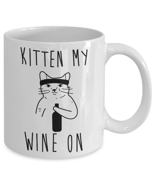 Gift gor cat lovers , Kitten wine on - White Coffee Mug Porcelain Tea Cup 11 oz - Great Gift