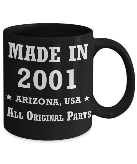 18th birthday gifts for women - Made in 2001 All Original Parts Arizona - Best 18th Birthday Gifts for family Ceramic Cup Black, Funny Mugs Gift Ideas 11 Oz