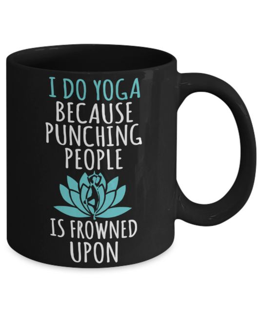 Yoga lovers mugs, I do yoga because punching people is frowned upon - Funny Black Porcelain Coffee 11 oz