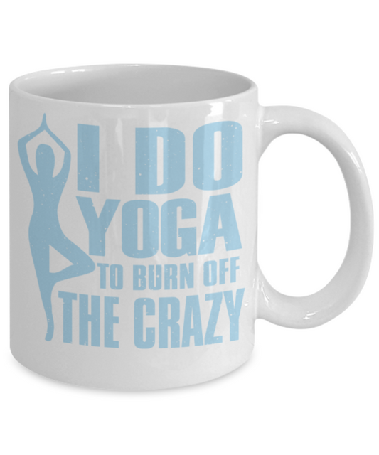 Yoga lovers mugs, I do yoga to burn off the Crazy - Funny White Porcelain Coffee 11 oz