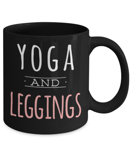 Yoga lovers mugs, Yoga and Leggings - Funny Black Porcelain Coffee 11 oz
