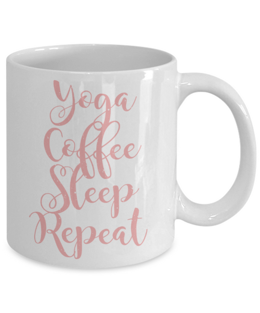 Yoga lovers mugs, Yoga Coffee Sleep Repeat - Funny White Porcelain Coffee 11 oz