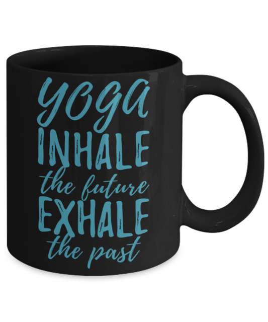 Yoga lovers mugs, Yoga inhale the future Exhale the past - Funny Black Porcelain Coffee 11 oz