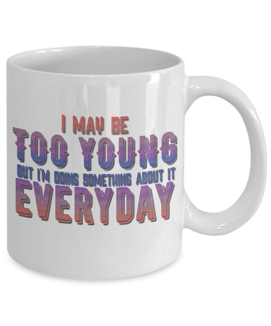 I May Be Too Young But I'm Doing Something About It Everyday- White Porcelain Coffee Mug 11 Oz Funny Quotes Coffee Mug