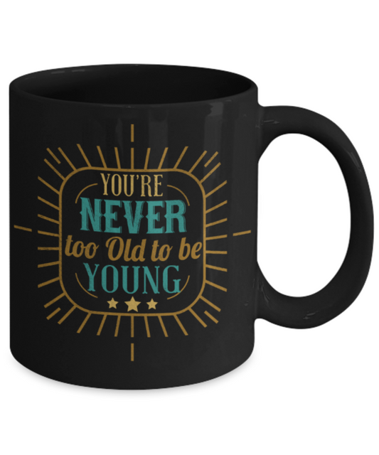 You're never too old to be young - Funny Black Porcelain Coffee 11 oz