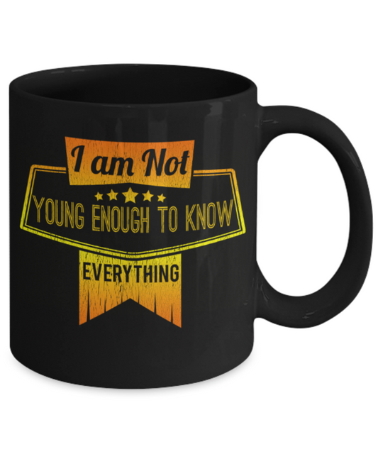 I am not young enough to buy everything - Funny Black Porcelain Coffee 11 oz