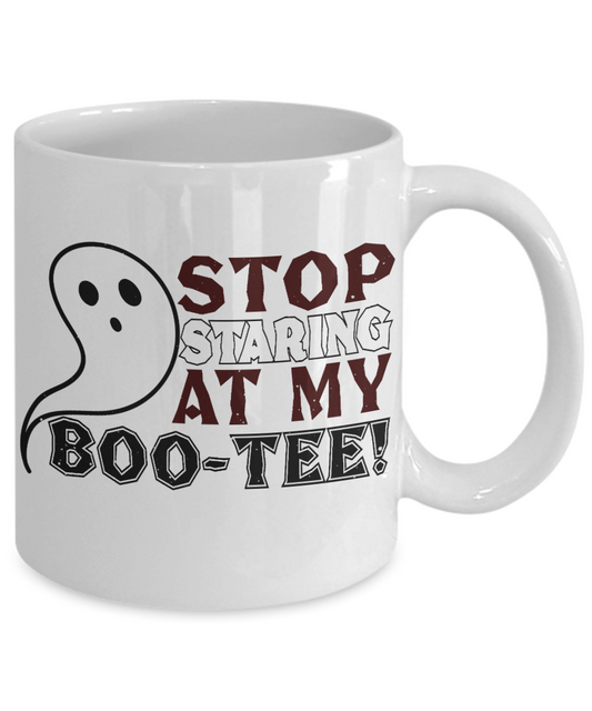 Halloween Coffee Mug, Stop Staring At My Boo-Tee- White Porcelain Coffee Mug 11 Oz For Halloween