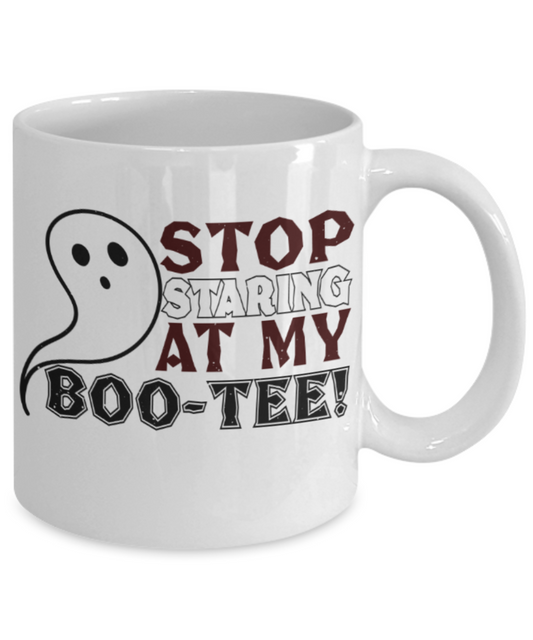 Midnight mug rogue - Stop staring at my Boo Tee - White Porcelain Coffee Mug Cute Ceramic Cup 11 oz