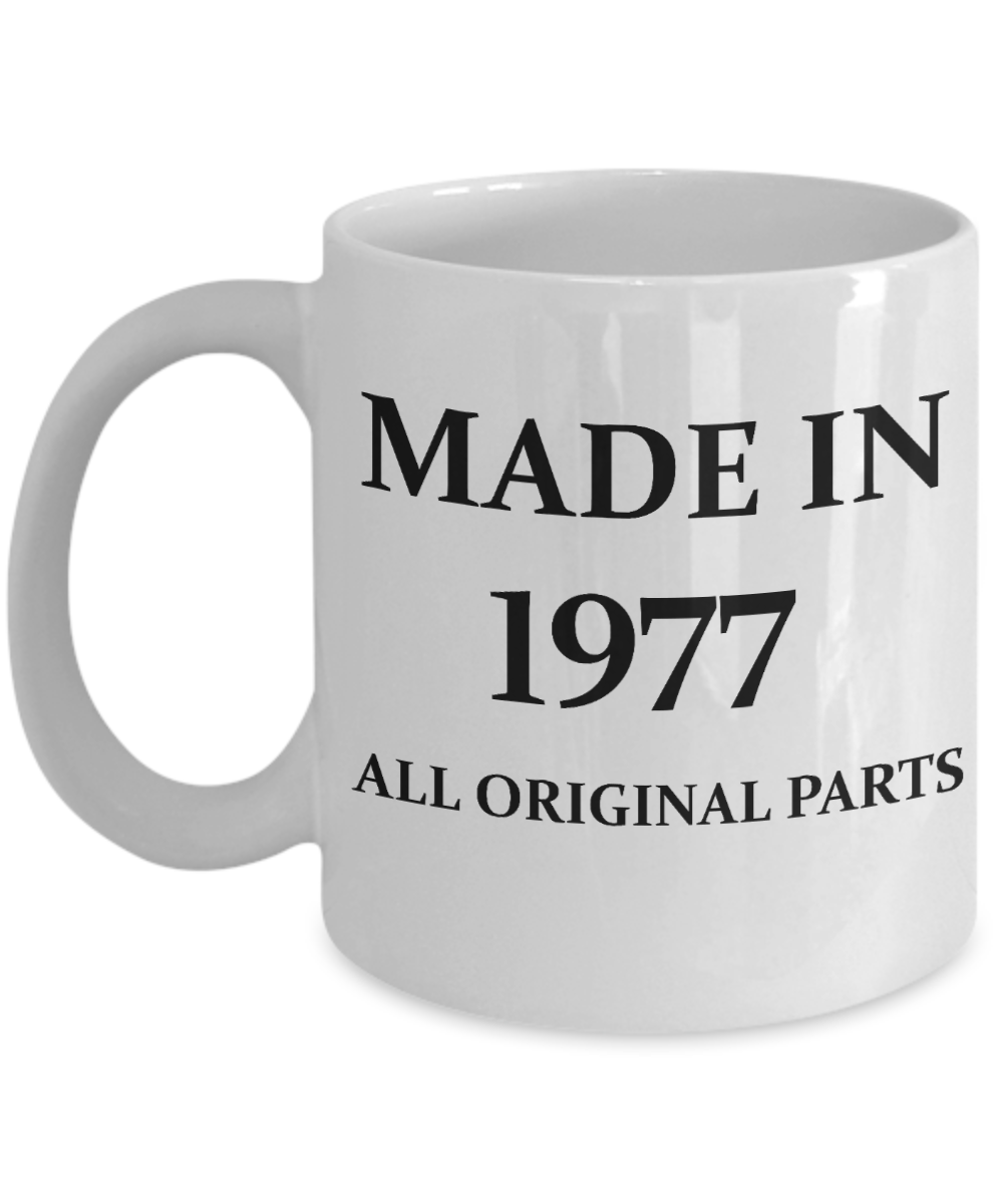 1977 birthday gifts for men cd & women, 41st Birthday Gifts - Made in 1977 All Original Parts - White Porcelain Coffee Cup,Premium 11 oz Funny Mugs White coffee cup Gifts Ideas