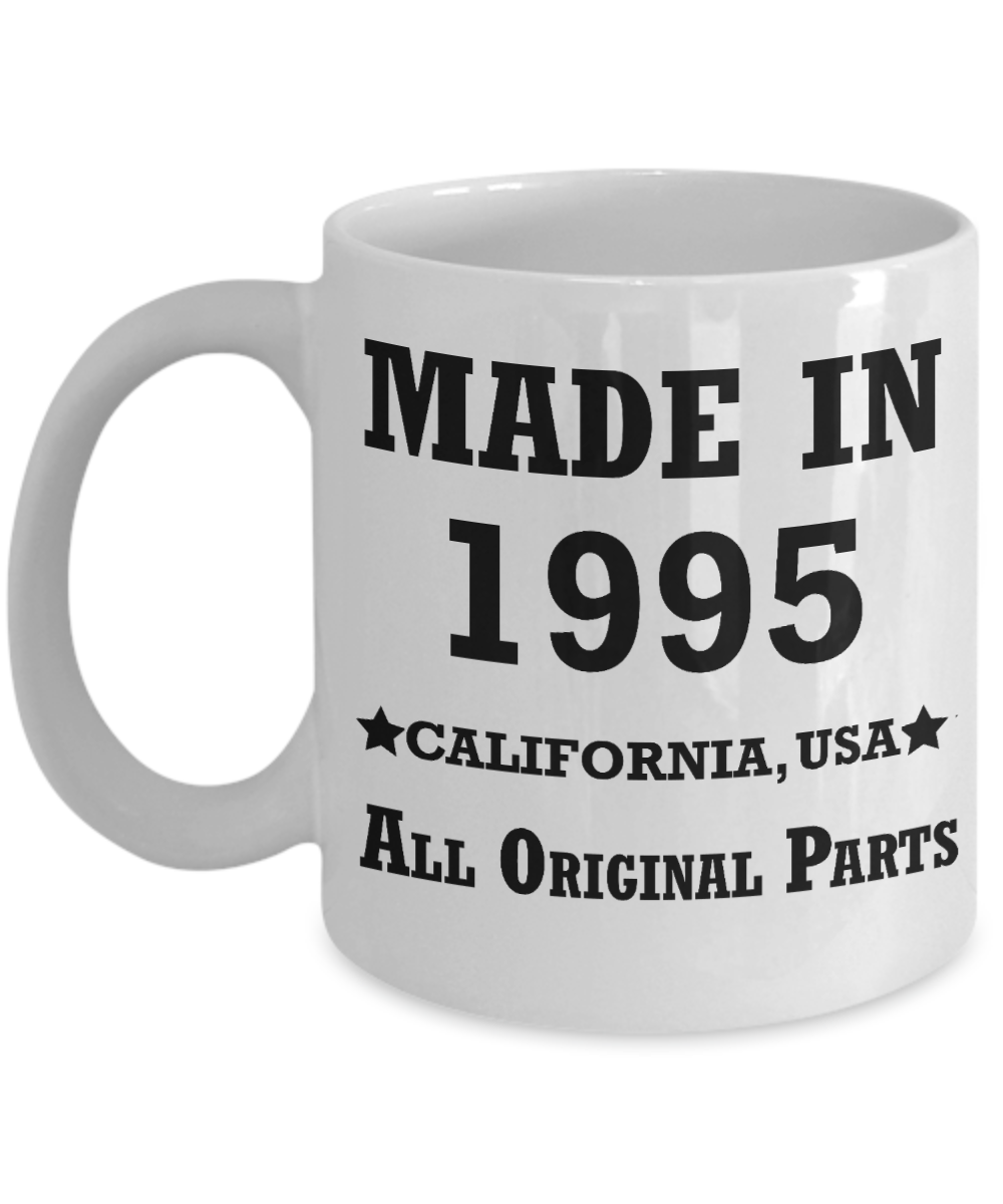 24th birthday gifts for women - Made in 1995 All Original Parts California - Best 24th Birthday Gifts for family Ceramic Cup White, Funny Mugs Gift Ideas 11 Oz