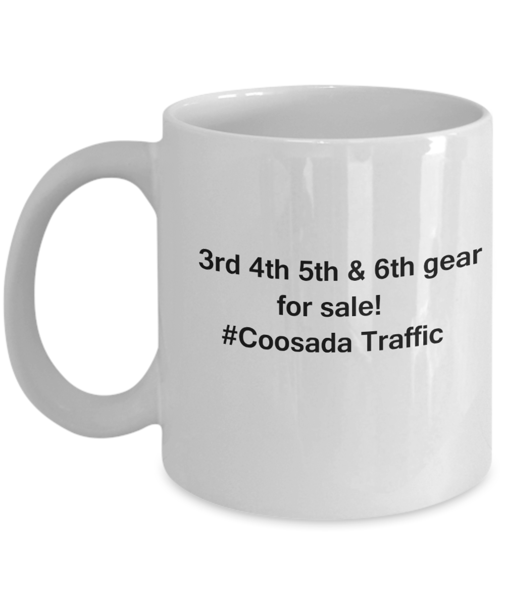 3rd 4th 5th & 6th Gear for Sale! Coosada Traffic White coffee mugs for Car lovers & drivers 11 oz