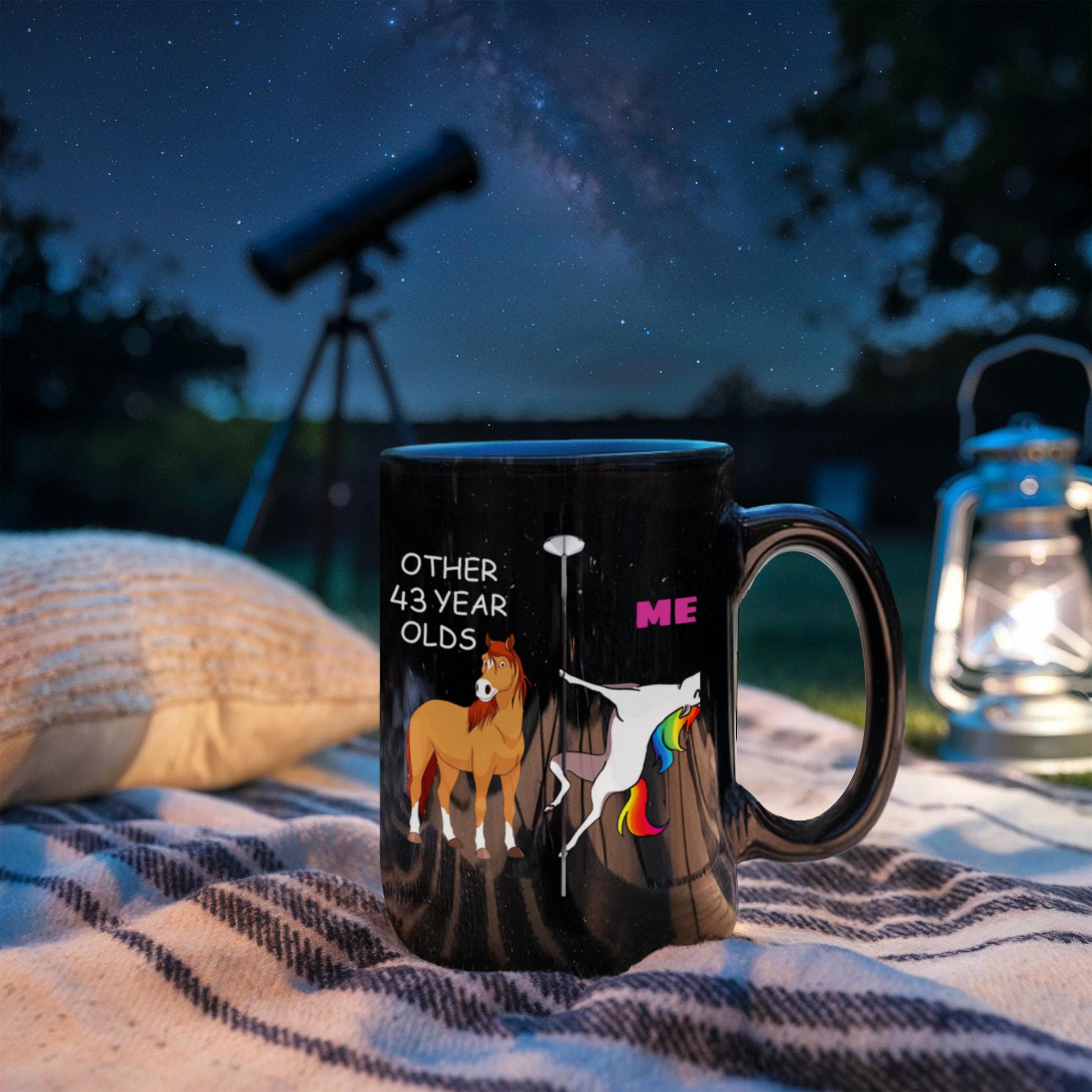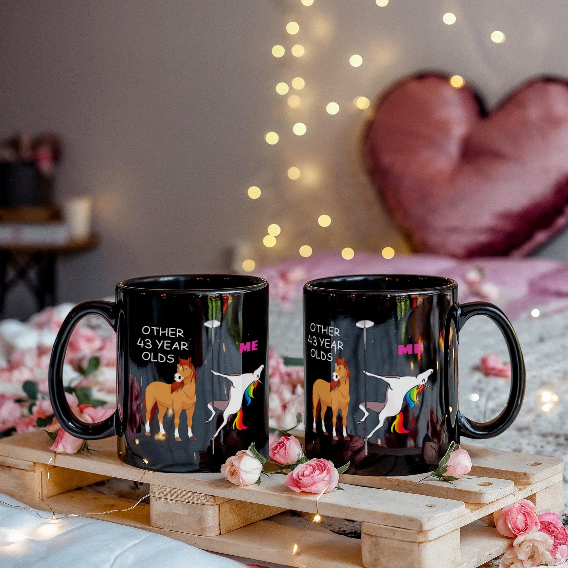 43rd Birthday Gift for Women - Other 43 Year Olds Me Unicorn Coffee Mug - Black Porcelain Coffee 11 oz for Grandma, Mom, Sister, Best Friend, Women