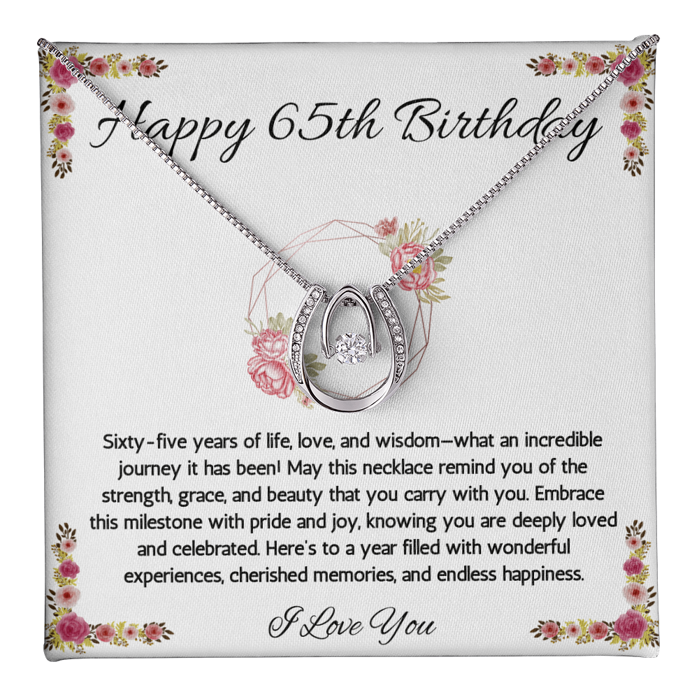 65th Birthday Women Gift Lucky in Love Message Card Necklace for Sister Mom wife Grandma Jewelry From dad Brother friend