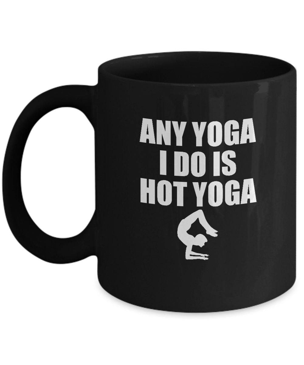 Any yoga I do is Hot yoga black coffee mugs for yoga lovers Funny Black coffee mugs 11 oz