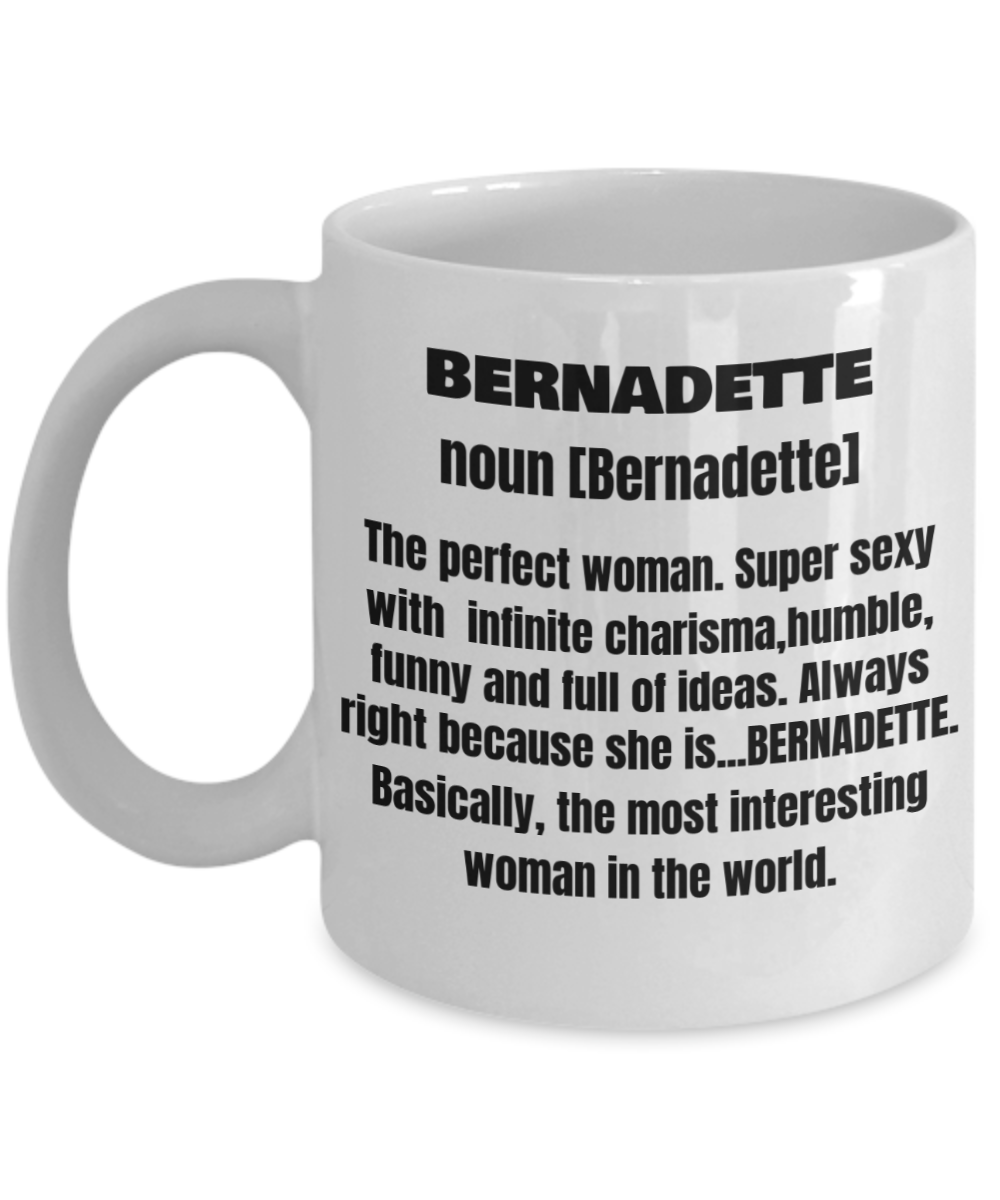 Bernadette First Name Adult Definition - Funny White Porcelain Coffee Mug Cute Cool Ceramic Cup 11 oz