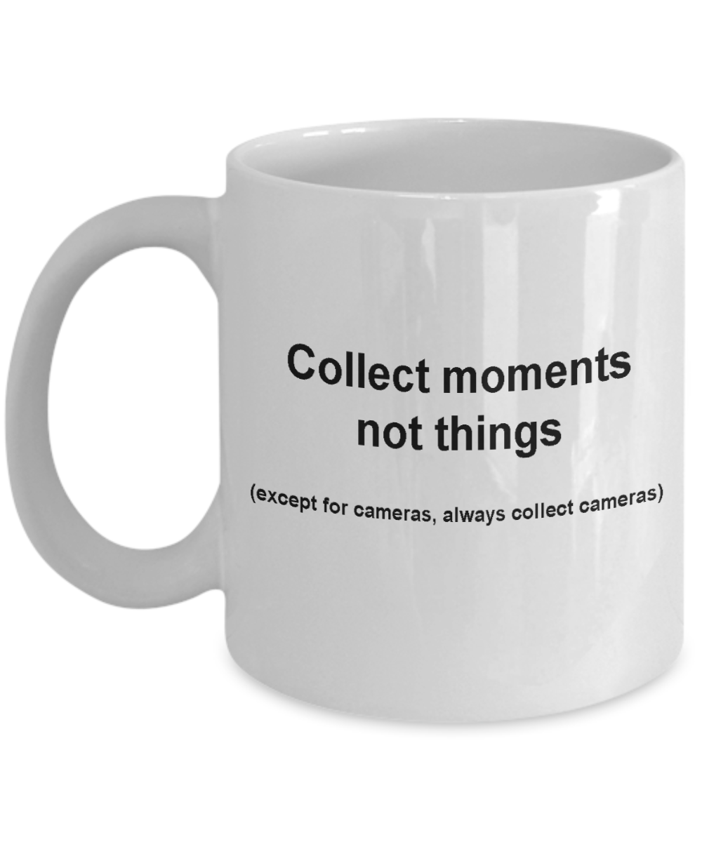 Camera collectors mug -Collect moments not things -White coffee mugs 11 oz