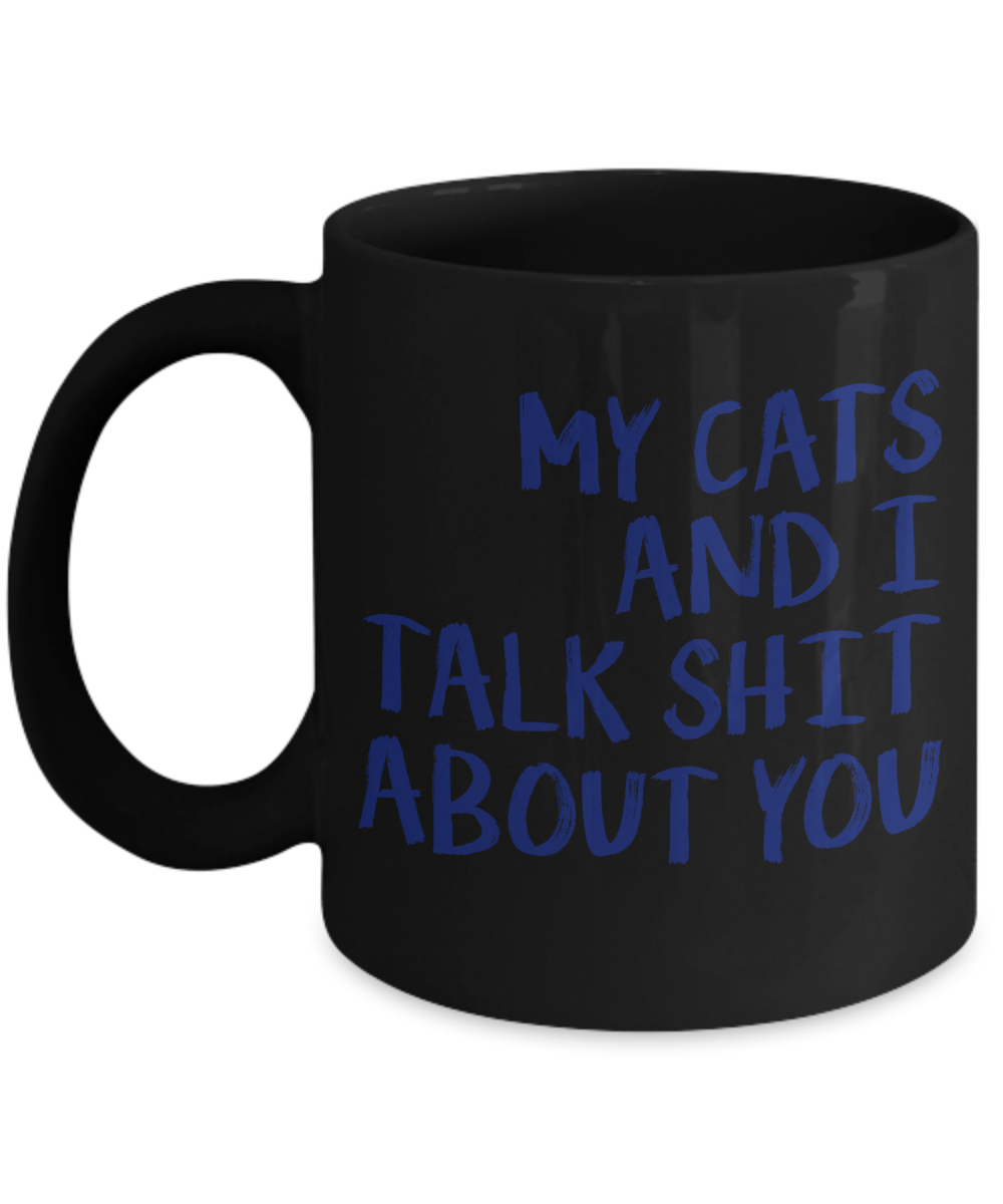 Cat Lover Coffee Mug, My Cats And I Talk Shit About You- Black Porcelain Coffee Mug 11 Oz for cat lover, mom, dad