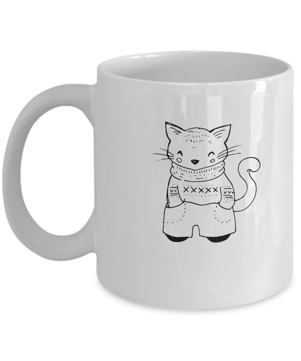 Christmas Doodles Sweater Cat coffee Mugs - Funny Christmas White coffee mugs 11 oz
