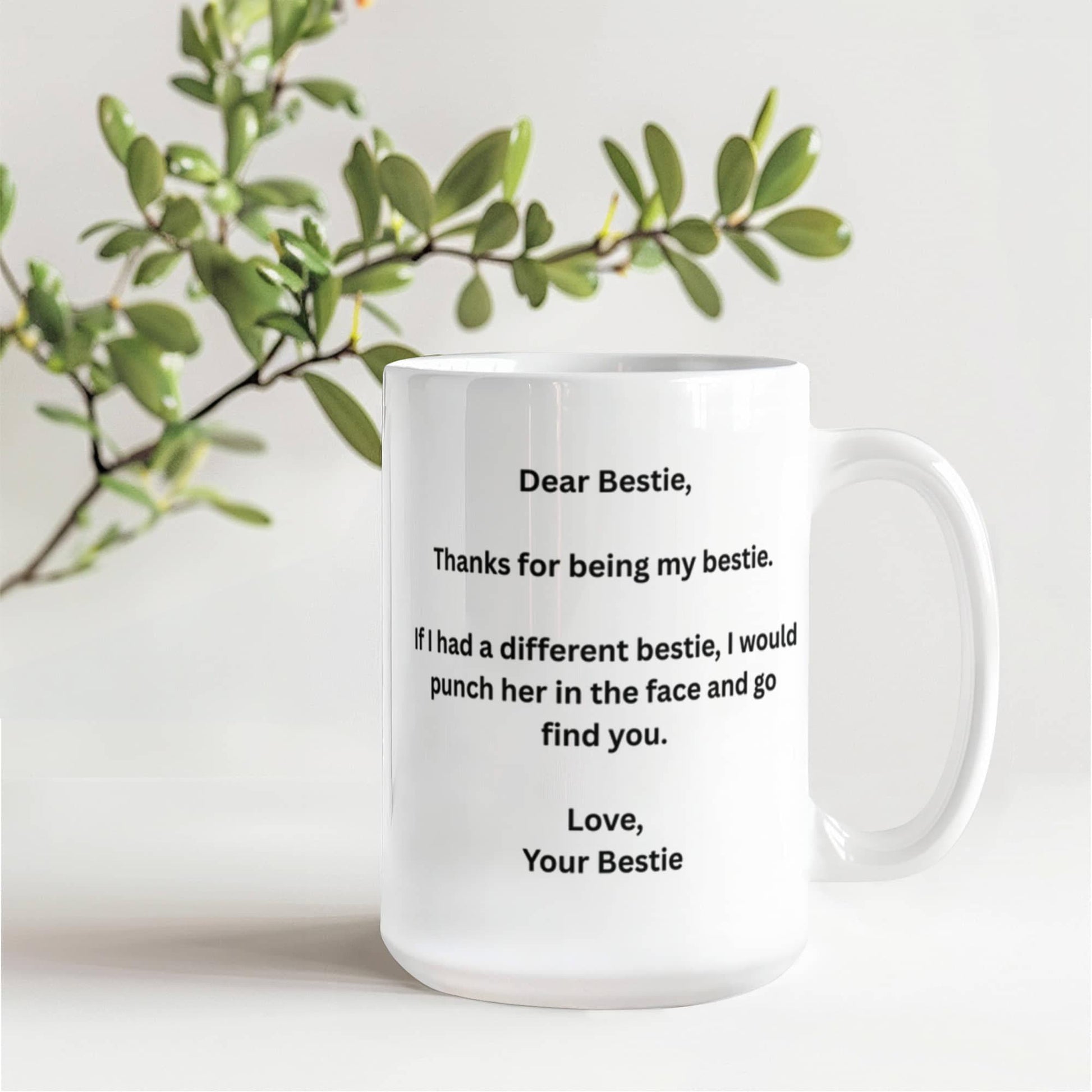 Dear Bestie, Thanks for being my Bestie.If I had a different bestie,I would punch her in the face and go find you. Lovely Friendship coffee mug