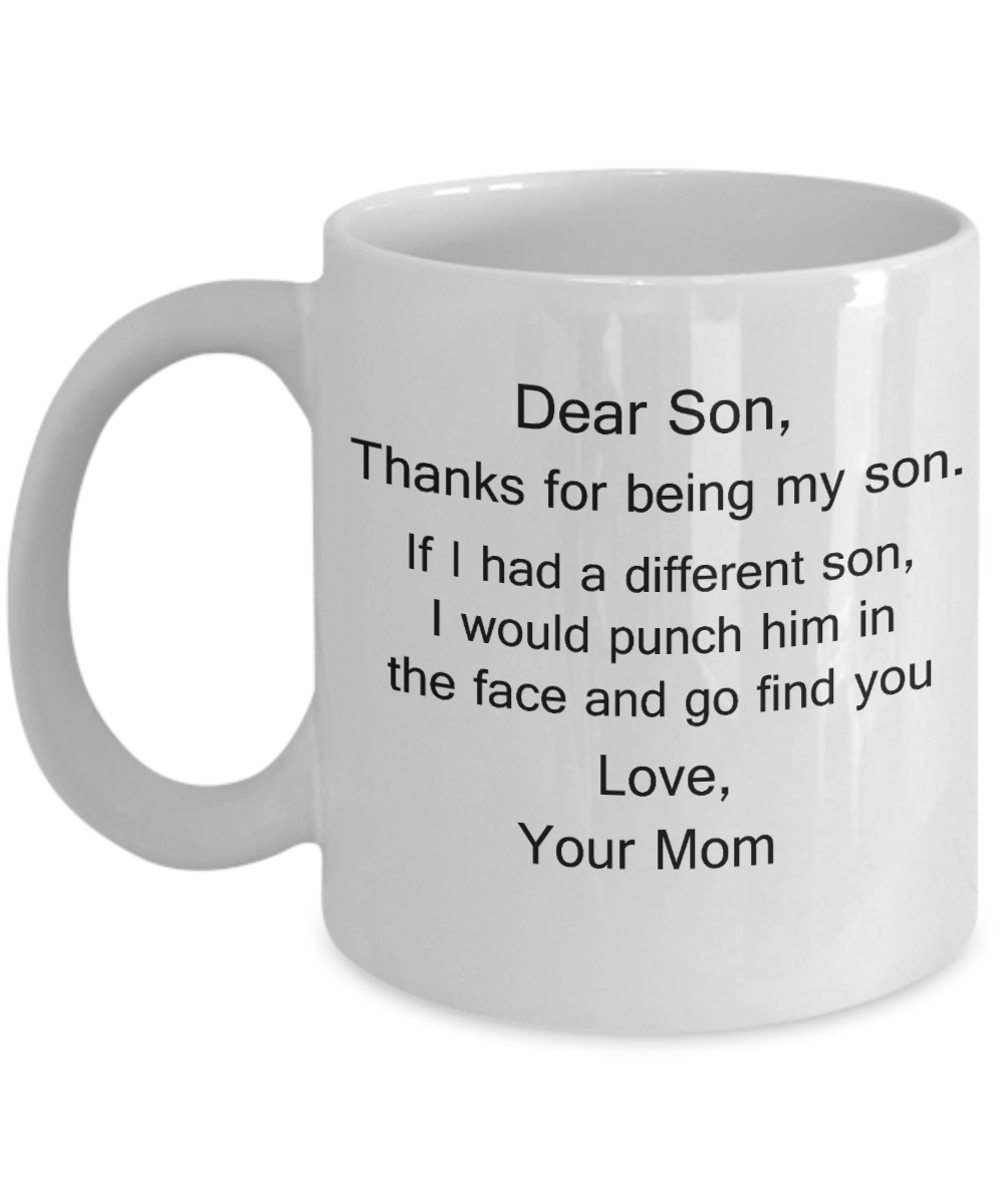 Dear Son Mugs, Thanks for being my Son gift idea Gifts from Mom/Mother Porcelain Tea White Cup - 11 oz - Great Gift