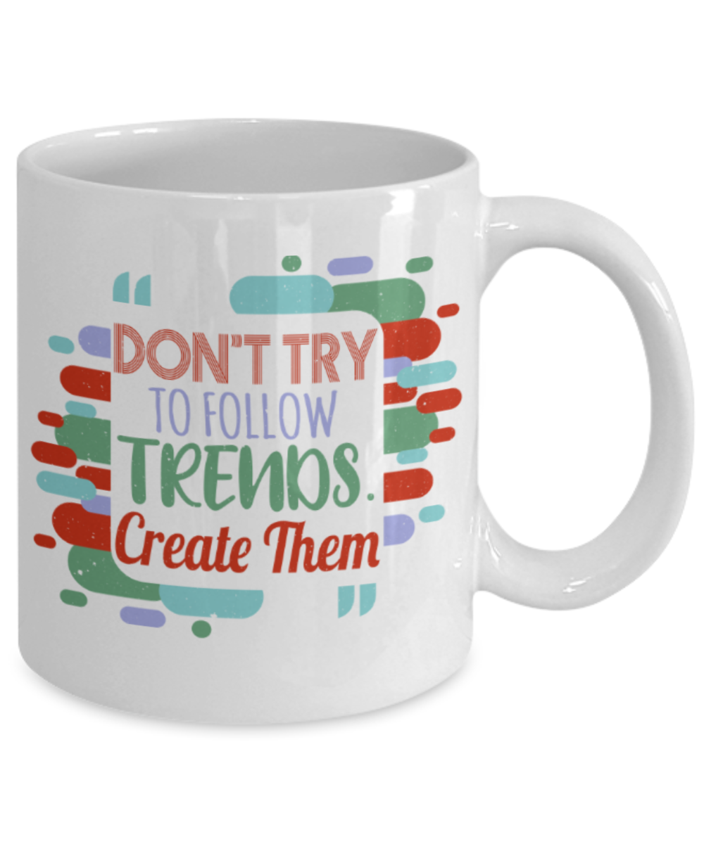 Don't try to follow trends, Create them - Funny White Porcelain Coffee 11 oz
