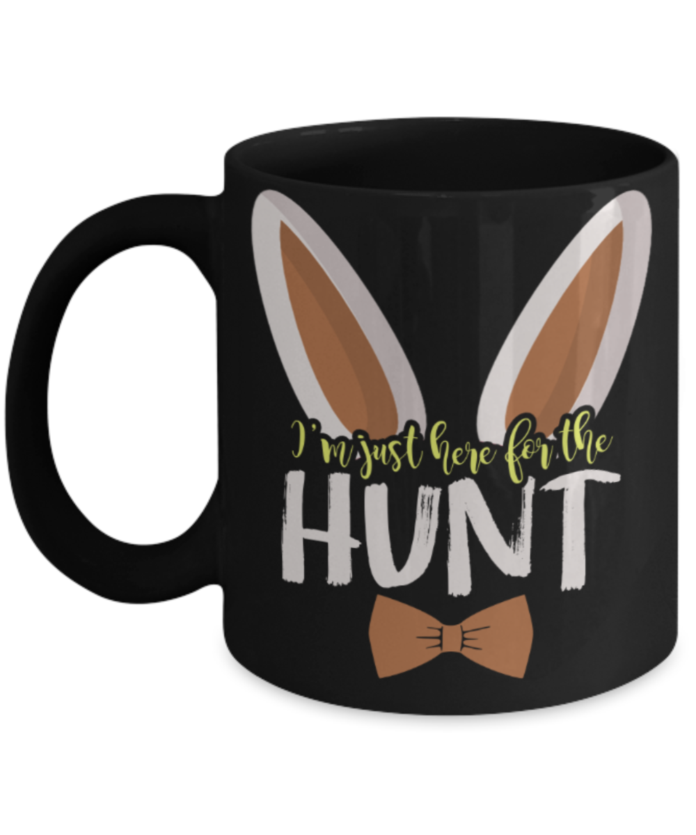 Easter bunny mugs - Bunny I'm just here for the hunt - Funny Black Porcelain Coffee Mug Cute Ceramic Cup 11 oz