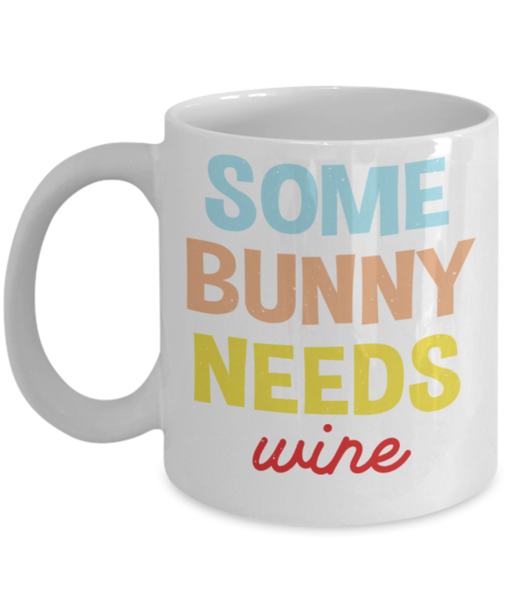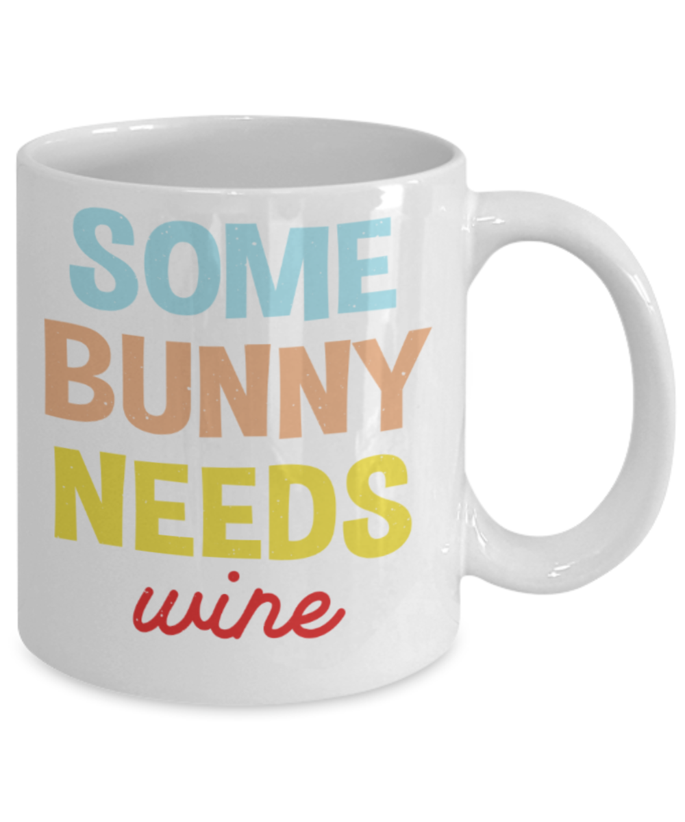 Easter bunny mugs - Some Bunny Needs Wine - Funny White Porcelain Coffee Mug Cute Ceramic Cup 11 oz