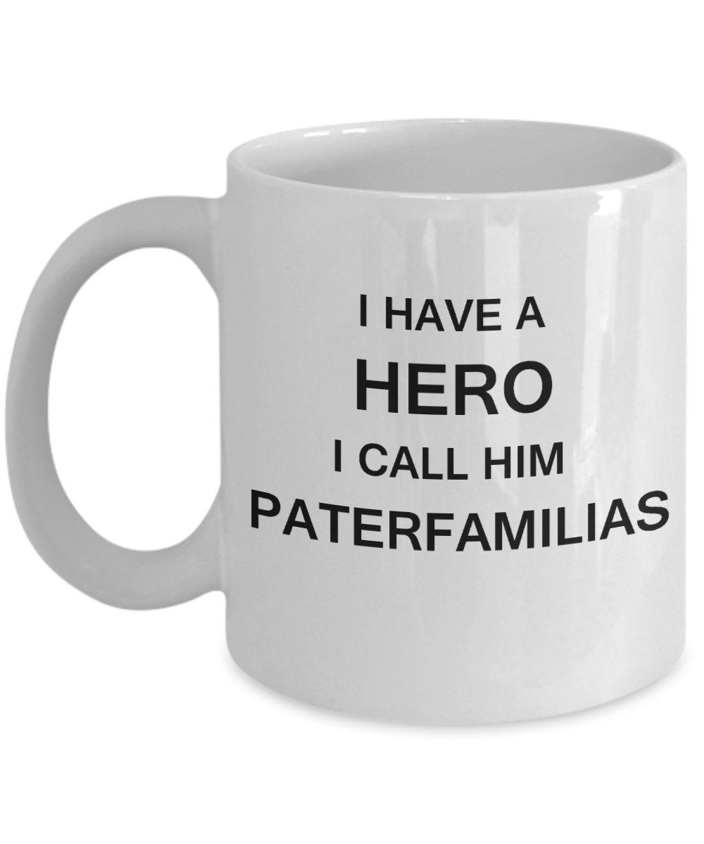 I HAVE A HERO I CALL HIM PATERFAMILIAS Fathers day gifts from daughter White 11 oz mugs funny