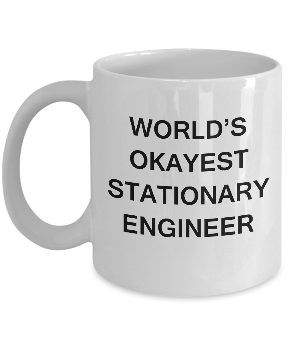 Funny Mug - World's Okayest Stationary Engineer - Porcelain White coffee mugs 11 oz